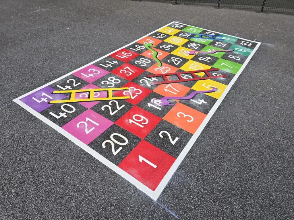 On the playground, sharing and group play are great ways to help children learn to communicate. Inventive and creative playground markings allow children to imagine their own games together with fun pictures of characters, or to learn more structured play such as playground chess or a ludo board game. Starting to play team games is beneficial to early friendship development by teaching children self-regulation, empathy and sharing.