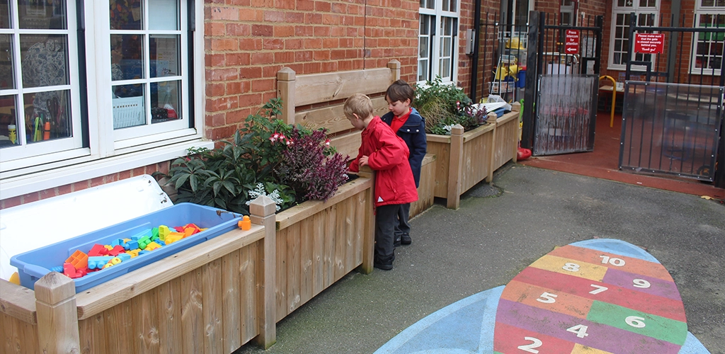 Raised planters are a great option to allow kids to explore a love for gardening if you have limited space. They require less maintenance than an allotment-style school garden and are, therefore, perfect for younger children to assist in planting and watering.