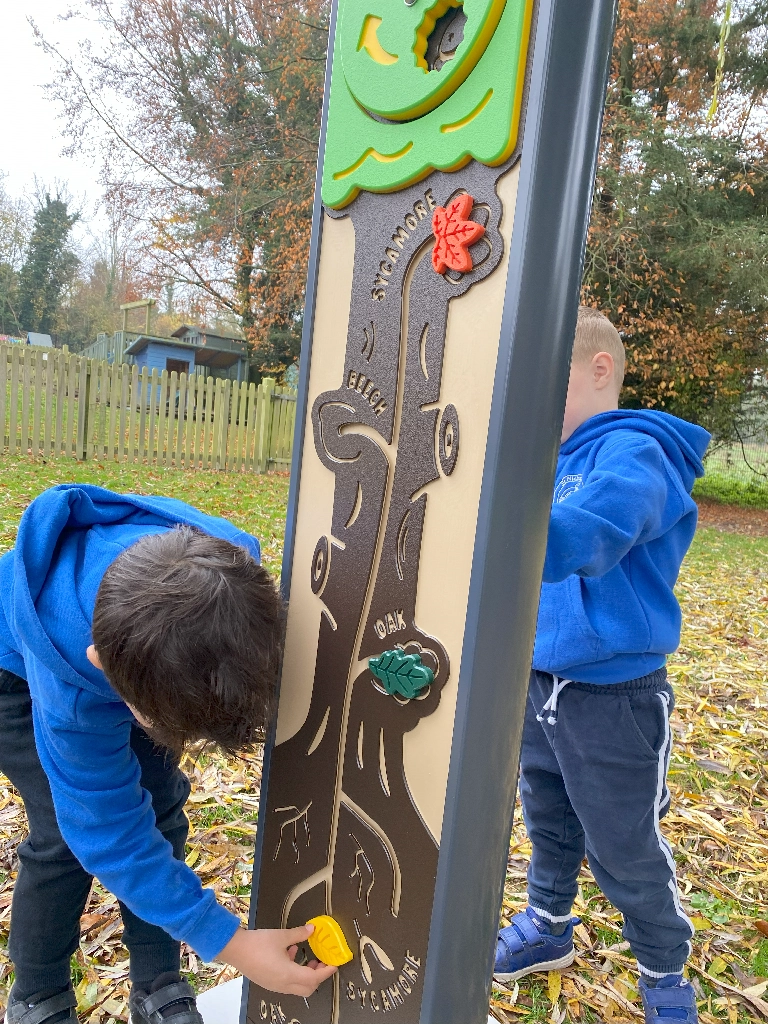 Combine Autumn sensory play ideas with educational outdoor play equipment and playground lesson plans for a fun way to explore curiosity and independence in play. Organise a scavenger hunt for different elements of nature, finding different kinds of leaves and taking bark rubbings. This activity encourages outdoor learning and the exploration of all the season has to offer. Additionally, with our educational play panels, students can explore self-directed learning, identifying different types of leaves to learn about their local environment.