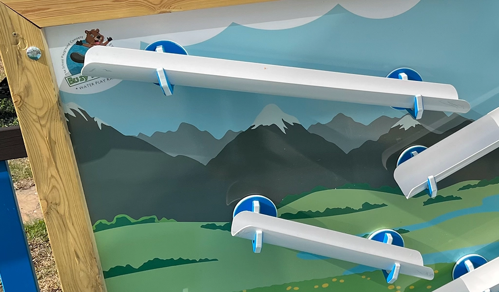 Interactive water play walls are a unique element of an outdoor sensory wall feature for older kids to engage in unique tactile games. Experimenting with water as it travels down pipes at different angles is great messy play fun that doesn’t leave anything to clean up.