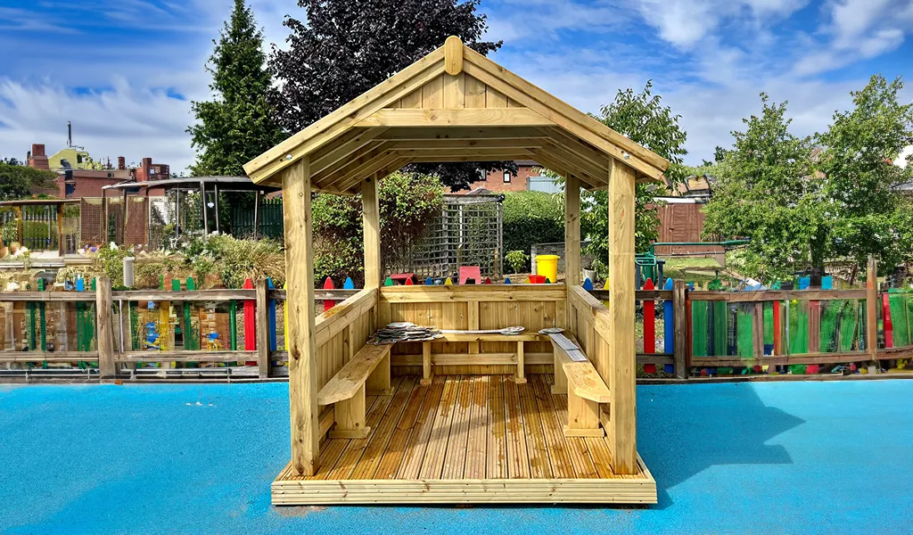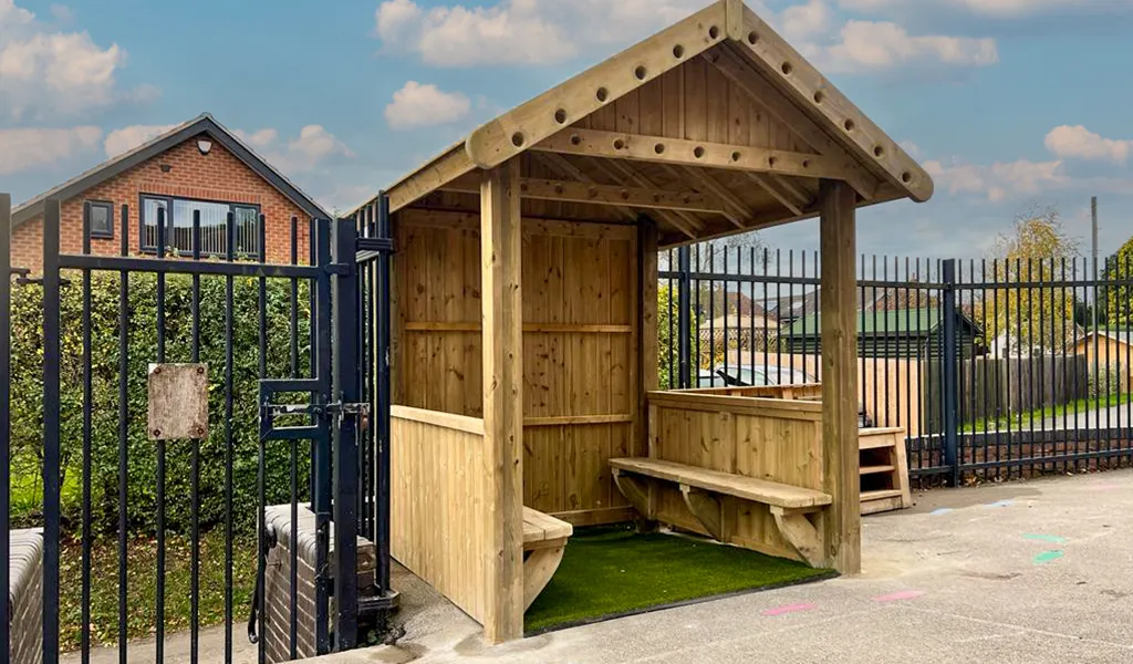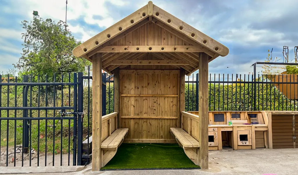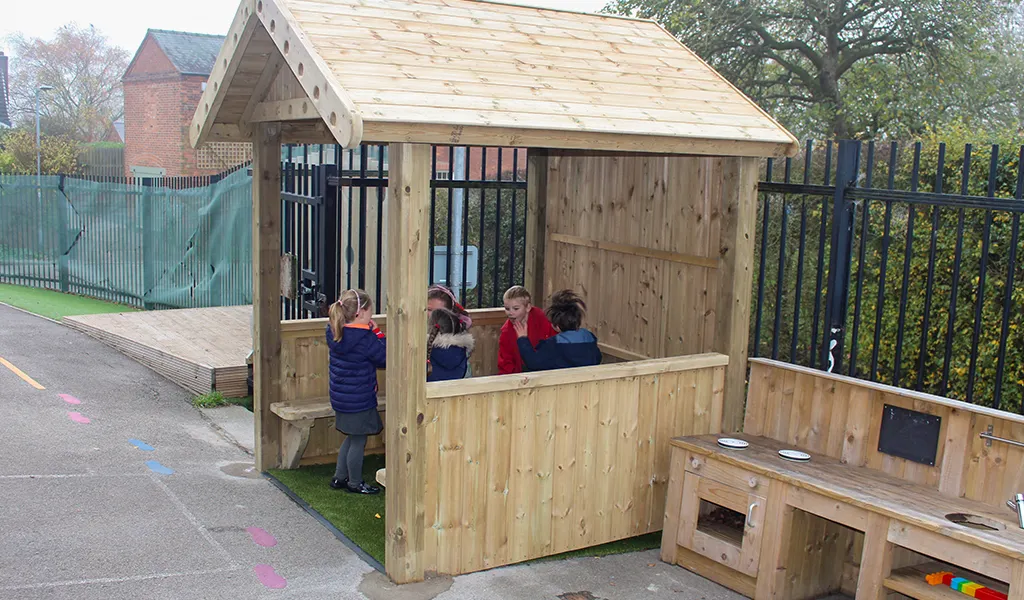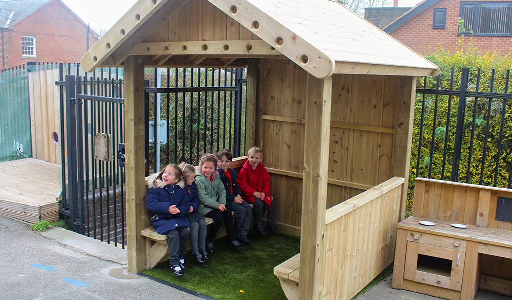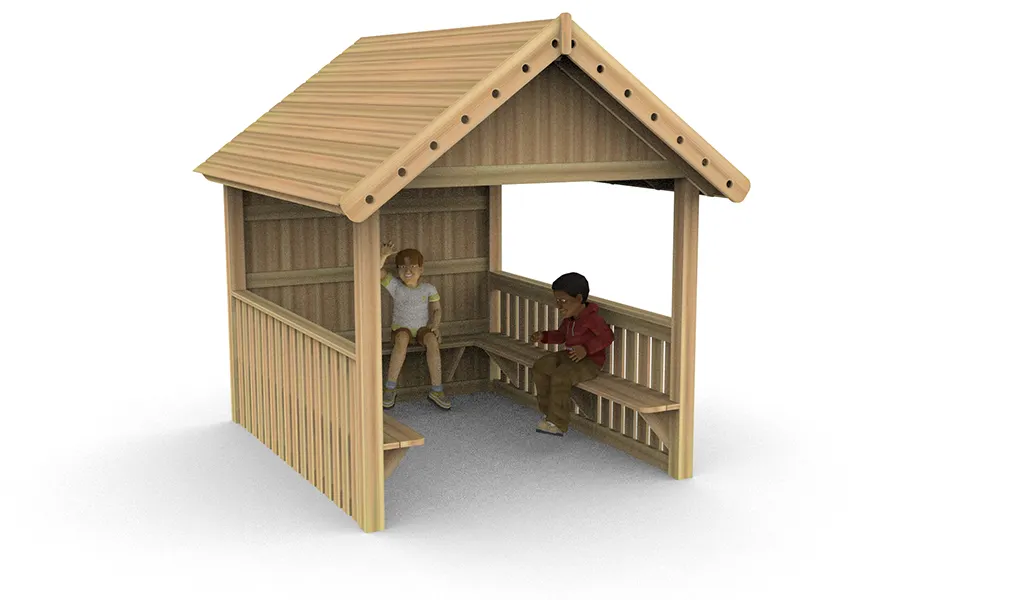 The shelter structure can be used as an outdoor reading area. This promotes imagination and creativity as the perfect feature to enhance your school playground. Kids can explore their imaginations with unlimited opportunities for reading, storytelling, play, and fun with the Reading Hut.