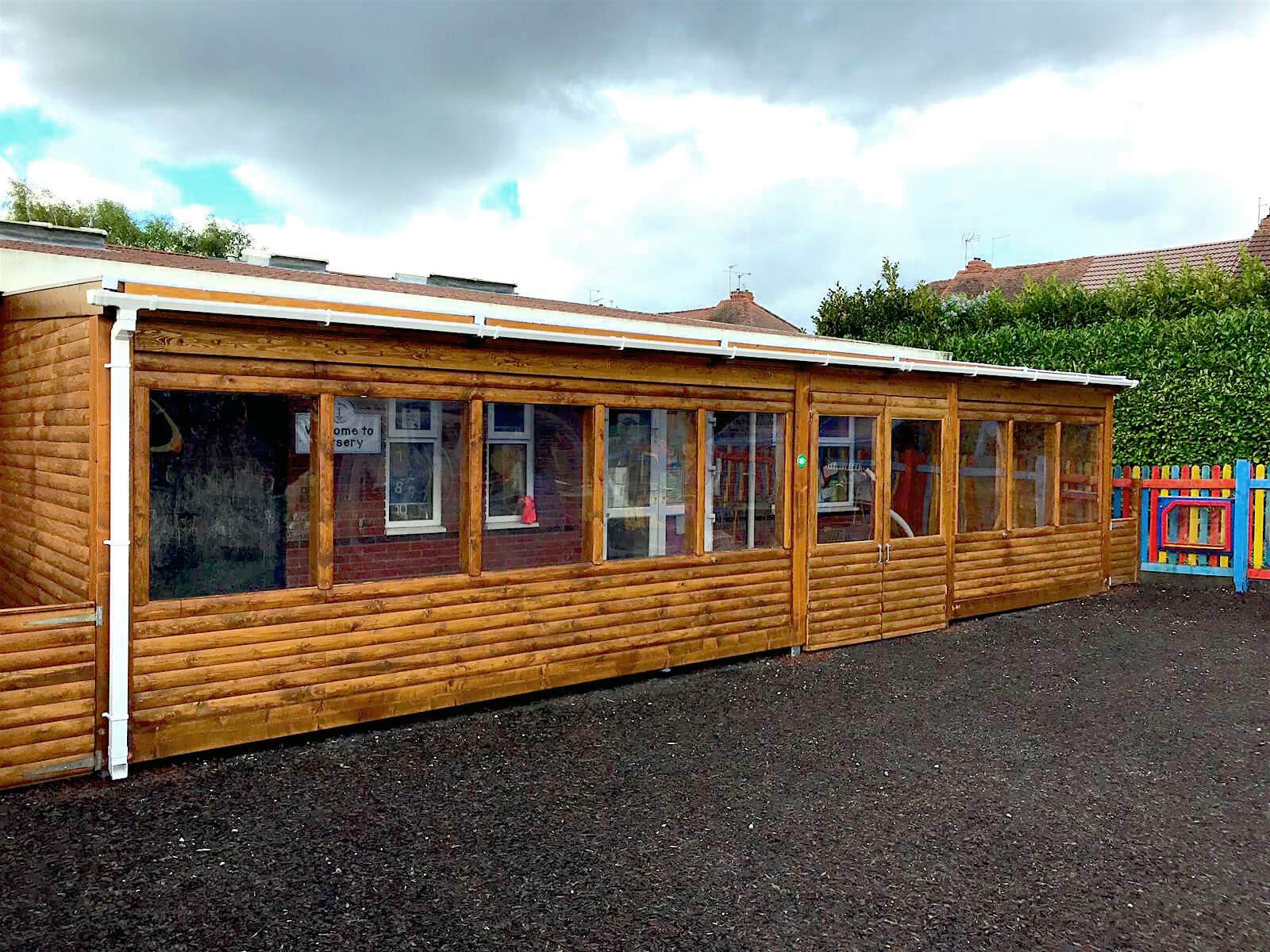 A New Edition to our outdoor classroom arsenal, our square school reading huts are the ideal outdoor cover for early years quiet spaces. These 2.5m x 2.5m shed classrooms are perfect for small groups to work together and play. These outdoor cabins for schools include bench seating, options panelling designs and a waterproof reading canopy roof to keep young learners dry and safe.