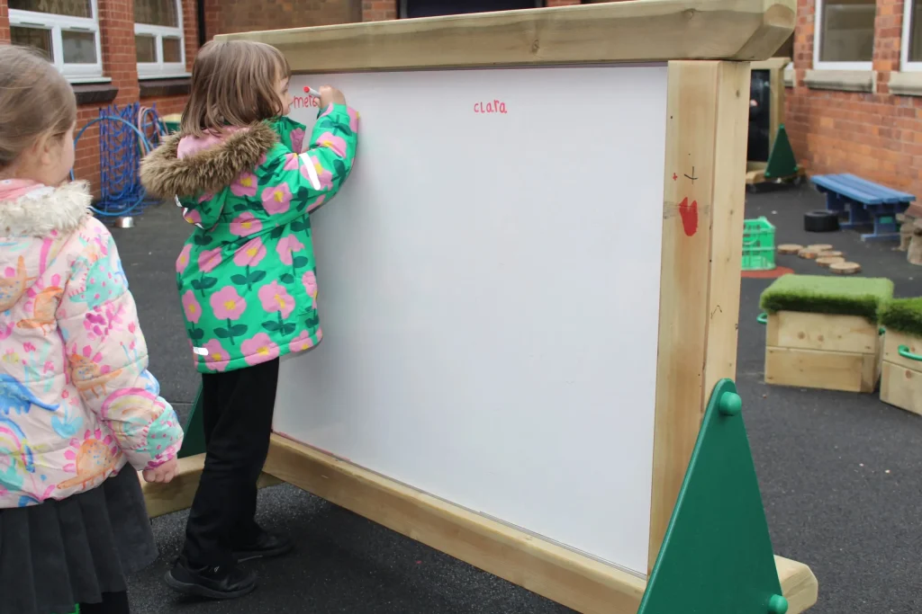 A whiteboard, chalkboard, and painting Window on Wheels is a brilliant, flexible feature for any EYFS outdoor area!