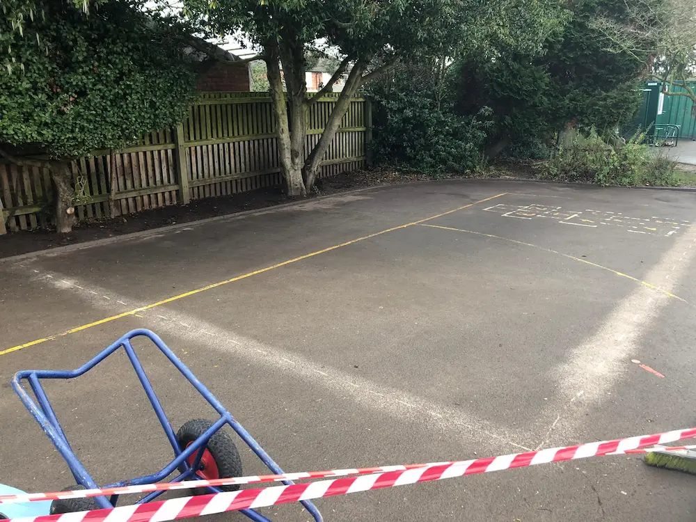 St Joseph’s Catholic Primary School, Whitnash, Royal Leamington Spa wanted to develop a small corner of their existing playground into a new Storytelling Play Area for their Key Stage 1 pupils. The School invited The School Playground Company the opportunity to quote for the first phase of the Story Telling Area, which was to supply and lay new Artificial Play Grass to the existing tarmac playground surface.