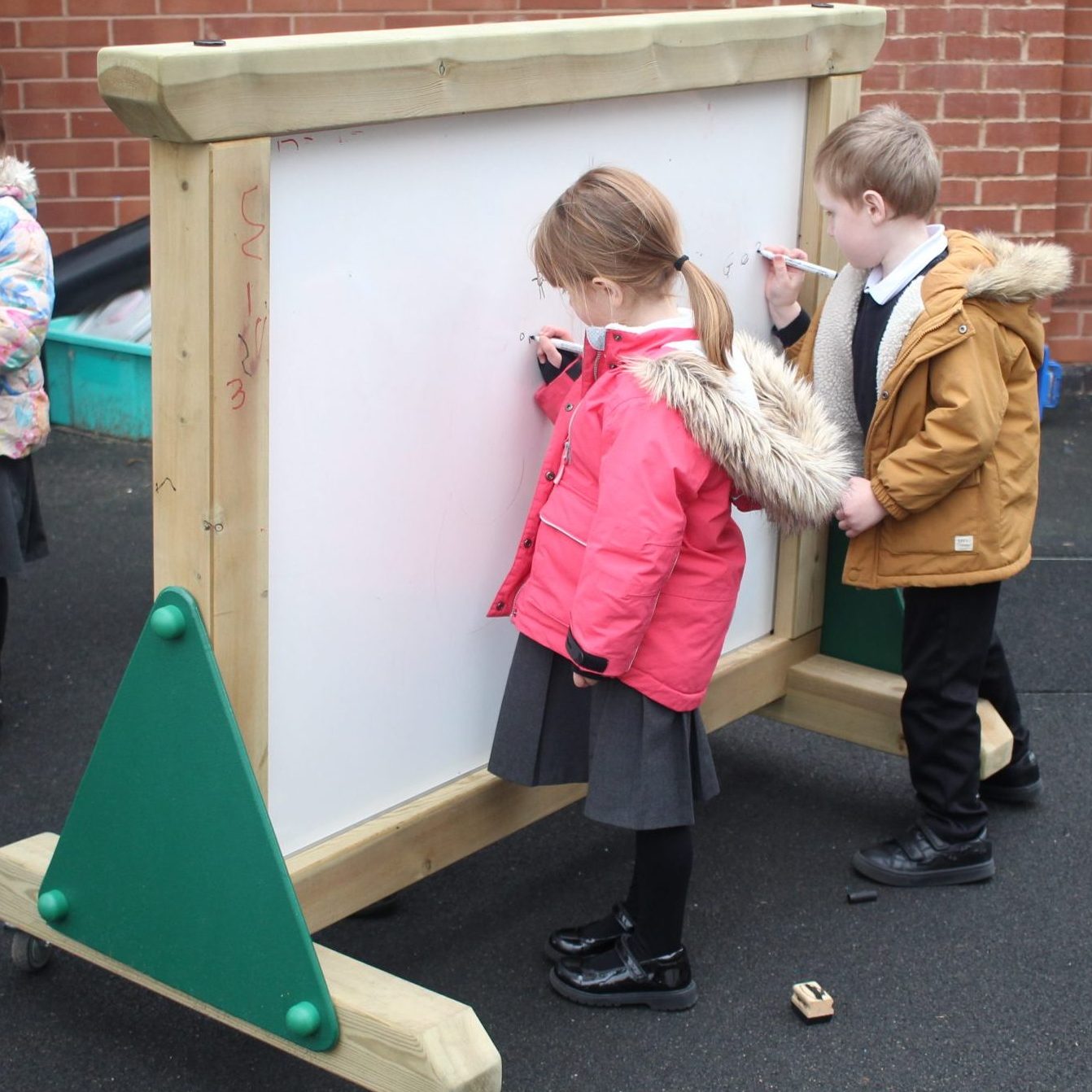 Bring lessons to the playground in the outdoor reading area to give students a change of scenery for a unique learning opportunity. The storytelling seat is large enough for teachers to sit at the front of the class chair circle in group reading. Additionally, students can lead show-and-tell or similar activities from the front of the outdoor classroom of their peers.